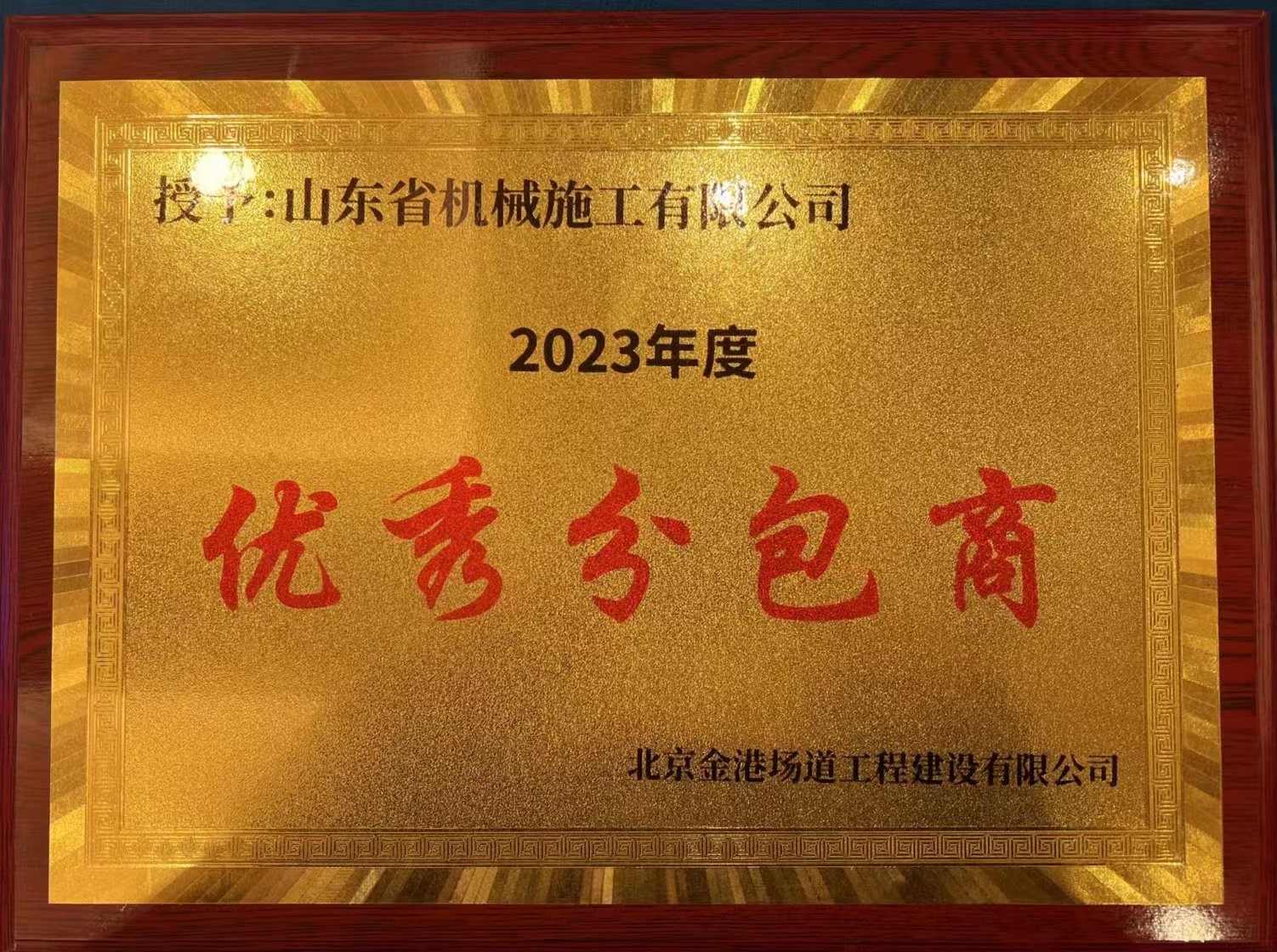 2024年1月24日,北京金港場(chǎng)道公司召開表彰大會(huì),我公司在眾多分包單位中脫穎而出,被授予“2023年度優(yōu)秀分包商”榮譽(yù)稱號(hào)。此榮譽(yù)是對(duì)我單位的充分肯定,在今后的施工中繼續(xù)以企業(yè)理念為導(dǎo)向,服務(wù)甲方,助力機(jī)場(chǎng)建設(shè)。