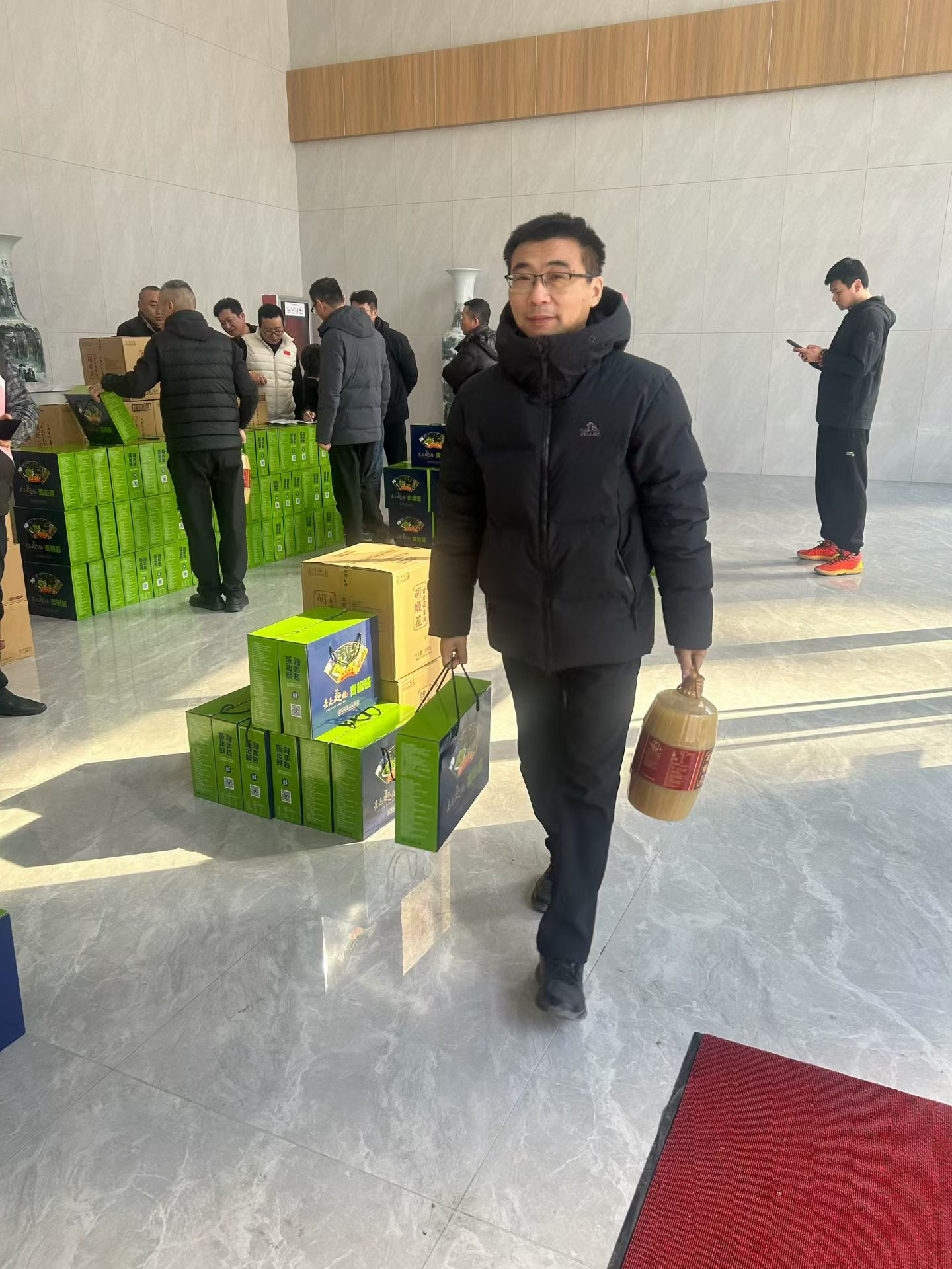 發(fā)放現(xiàn)場,工作人員有序核對、分發(fā)。大家手提沉甸甸的年貨,臉上洋溢著笑容,紛紛表達著對公司的感激之情。在這寒冷的冬日里,這歡聲笑語仿佛一股暖流,驅(qū)散了寒意,讓大家感受到了家一般的溫暖。