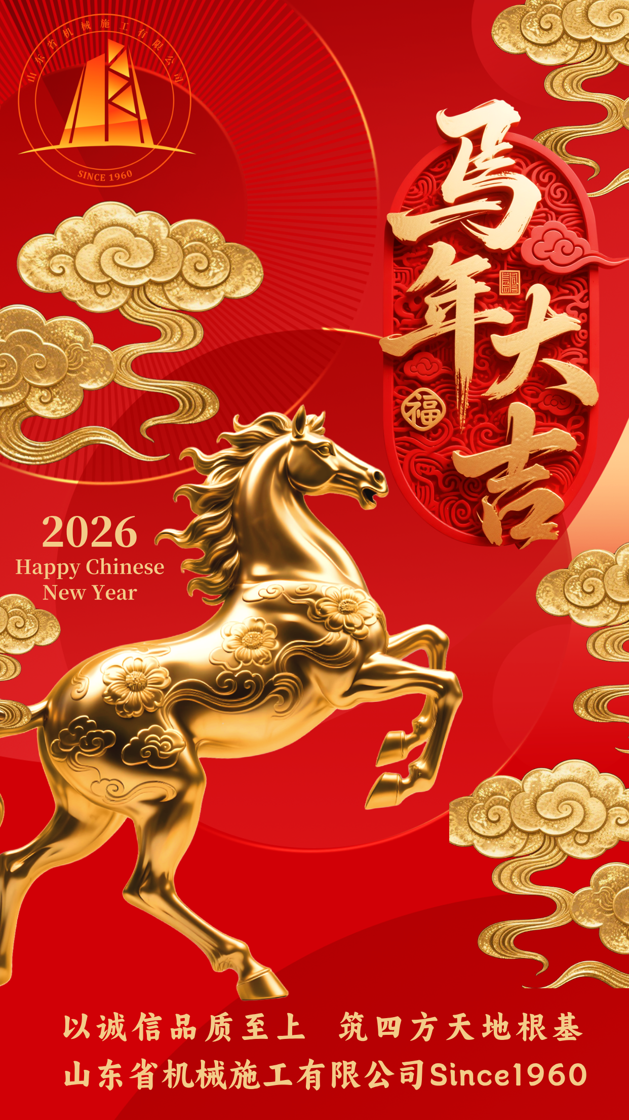 值此辭舊迎新的美好時(shí)刻,山東省機(jī)械施工有限公司謹(jǐn)向長(zhǎng)期以來關(guān)心支持公司發(fā)展的各級(jí)領(lǐng)導(dǎo)、各界合作伙伴以及全體員工及家屬,致以最誠(chéng)摯的祝福!