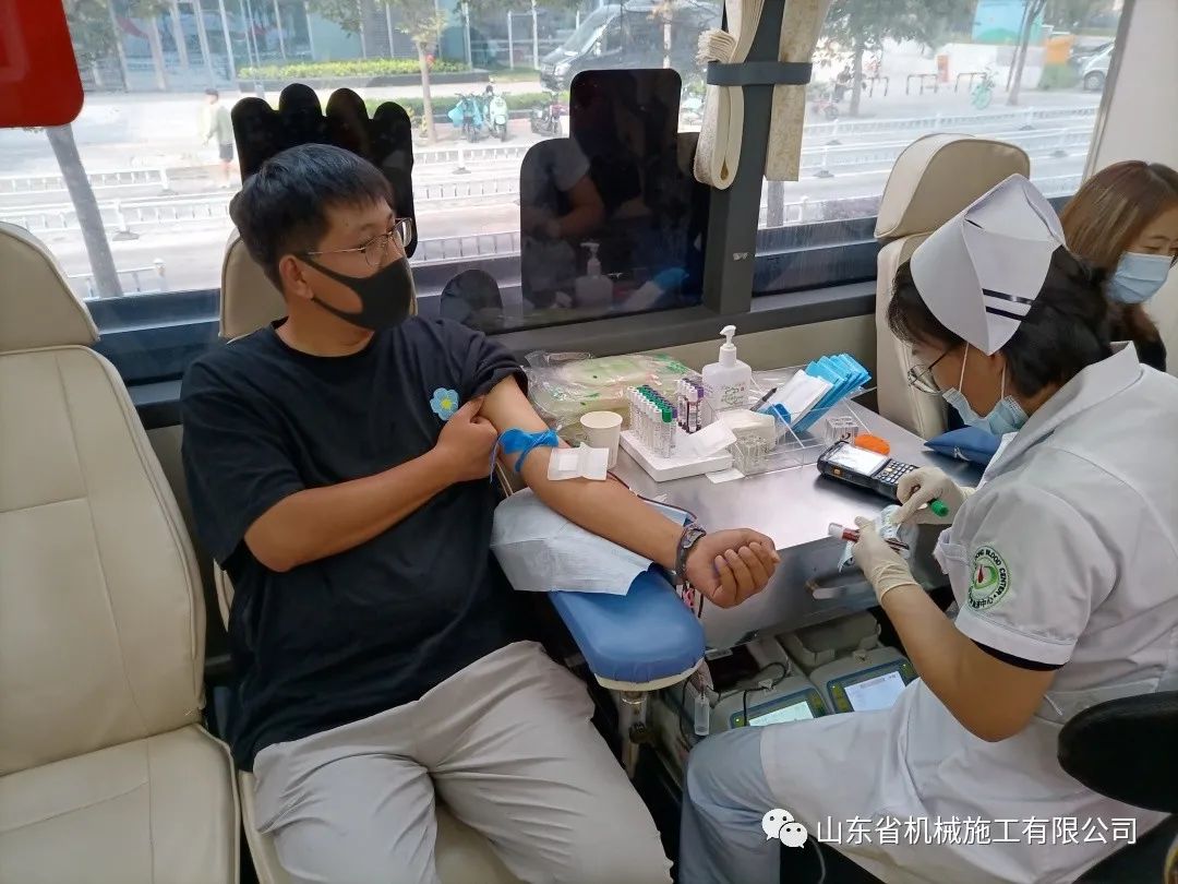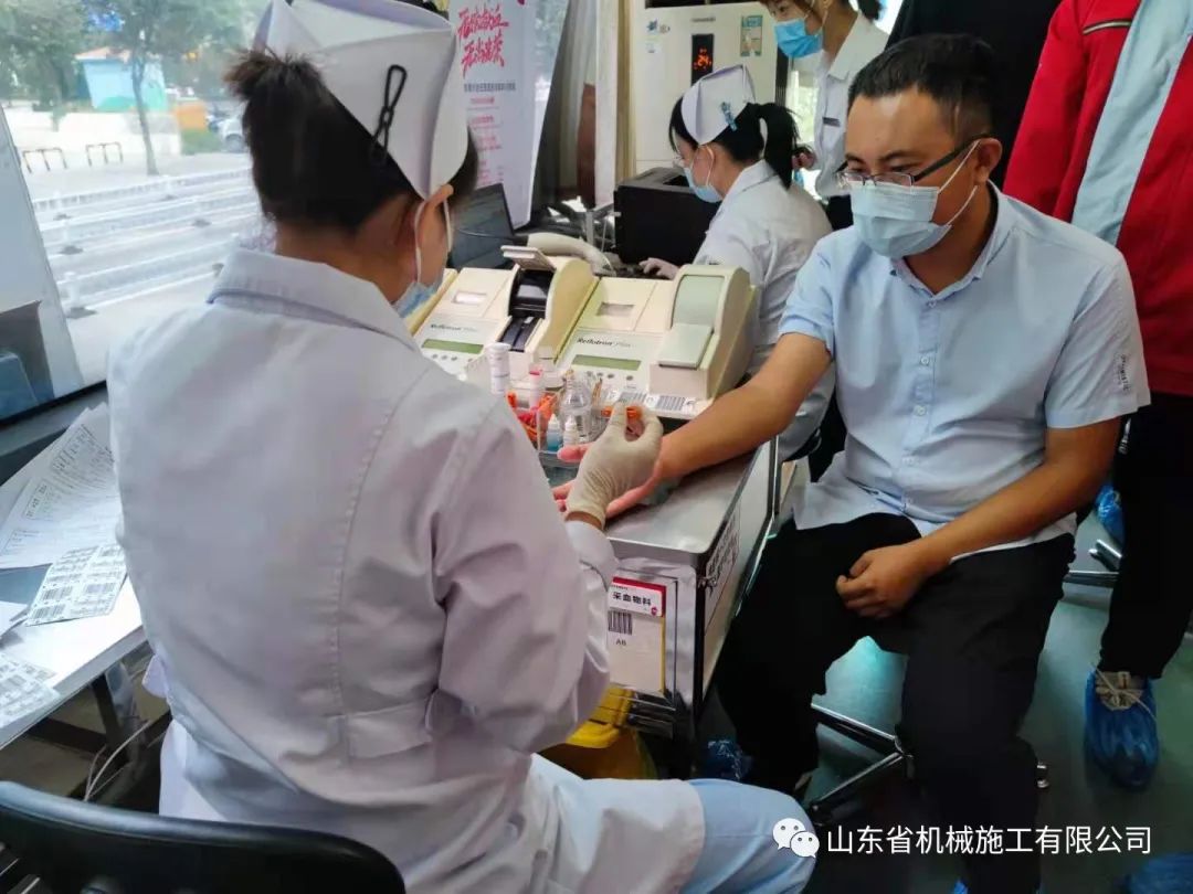 因受疫情及學生放假影響,省血液中心血庫庫存告急,在得知該情況后,山東機施立即動員職工參加無償獻血活動。作為常年參加公益、慈善活動的董事長沈繽第一個報名,在沈董的大愛精神引導下員工們也紛紛報名參加。省血液中心對于公司員工的善舉表示衷心的感謝,并于8月2 8日安排采血車來到公司上門采血。