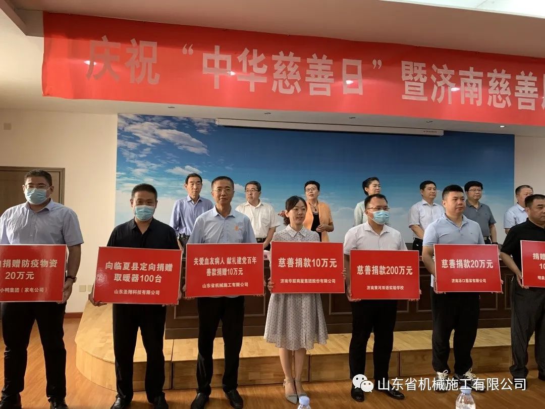 值第六個(gè)“中華慈善日”來臨之際,為深入宣傳《慈善法》、《山東省慈善條例》,培育社會(huì)慈善意識(shí),展示濟(jì)南慈善事業(yè)發(fā)展成果,濟(jì)南慈善總會(huì)于2021年9月3日上午9:30,在濟(jì)南福利總廠院內(nèi)舉辦了慶祝第六個(gè)“中華慈善日”暨濟(jì)南慈善展室啟動(dòng)活動(dòng),并組織愛心企業(yè)現(xiàn)場(chǎng)捐贈(zèng)和困難家庭大學(xué)新生救助。作為槐蔭區(qū)愛心企業(yè)代表,山東省機(jī)械施工有限公司黨委書記孫宗義代表公司參加了活動(dòng)。