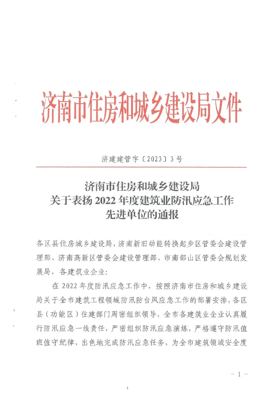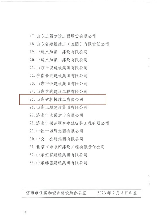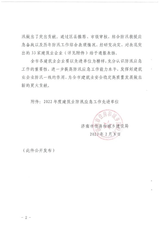 近日,濟(jì)南市住房和城鄉(xiāng)建設(shè)局發(fā)布的《關(guān)于表揚(yáng)2022年度建筑業(yè)防汛應(yīng)急工作先進(jìn)單位的通報》中,山東省機(jī)械施工有限公司榜上有名。