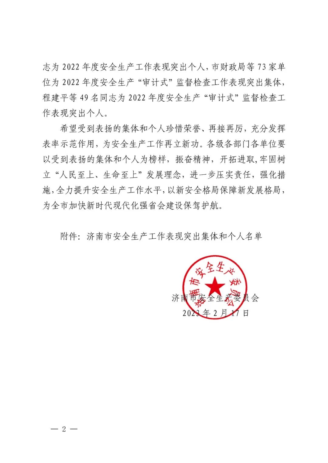通報表揚|山東省機械施工有限公司被評選為 2022 年度安全生產工作表現(xiàn)突出集體