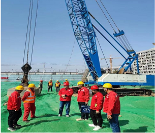 2月26日,第三分公司中德產(chǎn)業(yè)園指揮部組織試夯施工。在試夯過程中,發(fā)現(xiàn)難以拔錘且達(dá)不到停錘標(biāo)準(zhǔn)。分公司領(lǐng)導(dǎo)高度重視,邀請公司總工程師、工程技術(shù)應(yīng)用研究員周廣泉總到現(xiàn)場指導(dǎo)工作。周總現(xiàn)場了解情況后,便與總包單位溝通后期基礎(chǔ)形式以及回填情況,最終方案定為在原地表上回填1m素填土作為起夯面,再進(jìn)行強(qiáng)夯施工。通過此方案進(jìn)行試夯,有效解決了拔錘困難問題,可正常施工,得到總包單位的高度認(rèn)可。