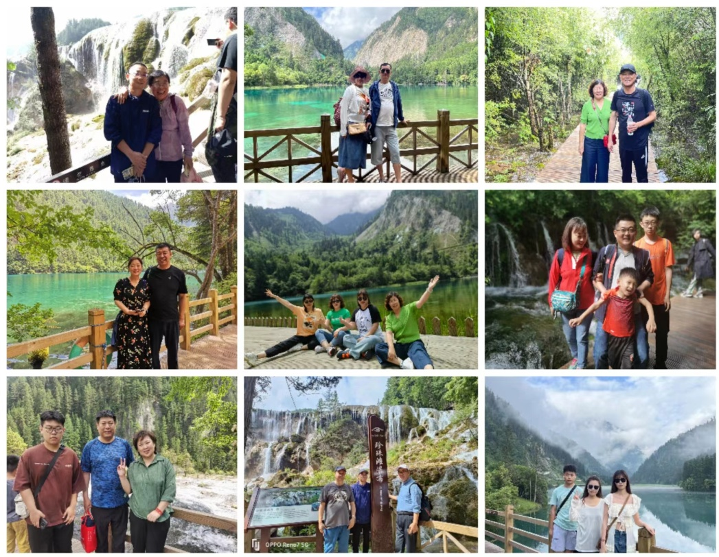 根據(jù)行程安排,旅行團先后游覽了都江堰、九寨溝峨眉山、成都寬窄巷子著名景點,體會四川的歷史文化,充分享受舒適的旅游休閑生活。途中美景迭至,讓人放飛心情,流連忘返,領(lǐng)略了異鄉(xiāng)城市風貌和風土人情,感受到了祖國山河的壯美,一路上歡聲笑語、其樂融融