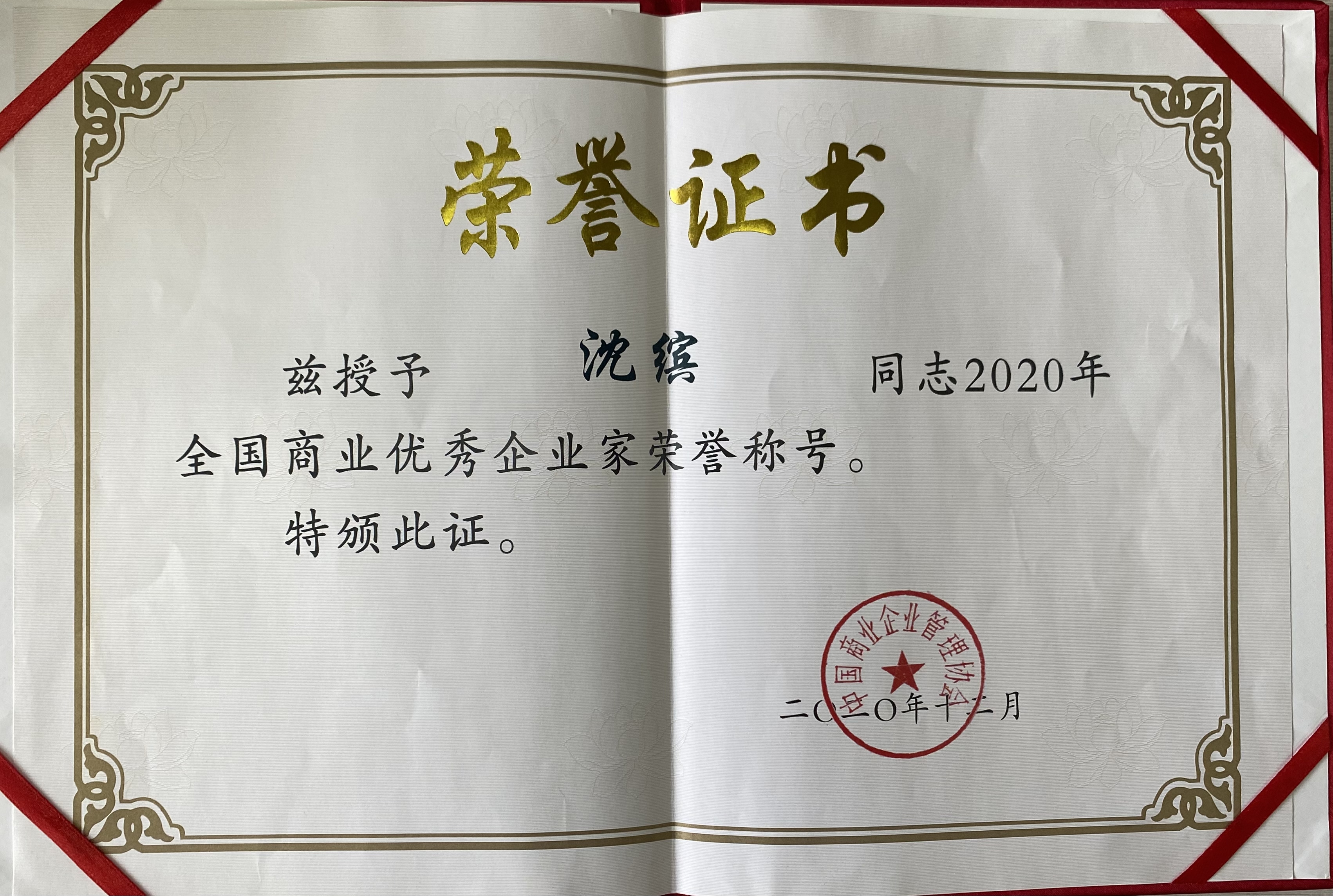 喜報(bào)|熱烈祝賀沈繽董事長再次榮獲“全國商業(yè)優(yōu)秀企業(yè)家”光榮稱號