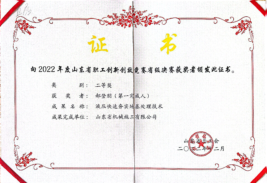 近日,山東省機(jī)械施工有限公司的創(chuàng)新技術(shù)《液壓快速夯實地基處理技術(shù)》被濟(jì)南市總工會直屬工會推薦為“全省職工優(yōu)秀創(chuàng)新成果入庫孵化轉(zhuǎn)化集中行動”入庫項目。
