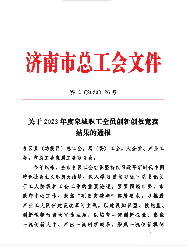 喜報(bào)|山東省機(jī)械施工有限公司研發(fā)的新技術(shù)被評選為濟(jì)南市職工優(yōu)秀技術(shù)創(chuàng)新成果二等獎(jiǎng)