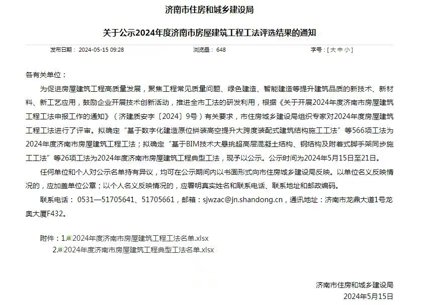 近日,濟(jì)南市住房和城鄉(xiāng)建設(shè)局公布2024年度濟(jì)南市房屋建筑工程工法評(píng)選結(jié)果,公司申報(bào)的《組合錘孔內(nèi)深層強(qiáng)夯地基處理施工工法》《填筑用水泥土漿施工工法》《旋挖全套管護(hù)壁灌注樁施工工法》三項(xiàng)工法全部入選,獲評(píng)2024年度濟(jì)南市房屋建筑工程工法,標(biāo)志著公司科技創(chuàng)新工作又取得了新的突破。