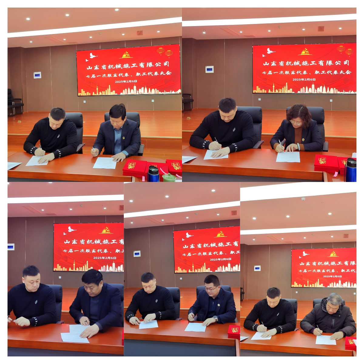 2025年2月6日,山東省機(jī)械施工有限公司七屆一次股東代表、職工代表大會在公司會議室召開。公司股東代表、職工代表、先模代表近30余人參會。會議審議通過了董事長行政工作報告、監(jiān)事報告、財務(wù)預(yù)決算報告等事項(xiàng);會上沈繽董事長與各承包人簽訂2025年承包合同;表彰了2024年度先進(jìn)單位和個人;動員全體職工在新的一年統(tǒng)一思想、堅定信心、再創(chuàng)佳績,為努力開創(chuàng)山東機(jī)施各項(xiàng)工作新局面做出更大的貢獻(xiàn)。